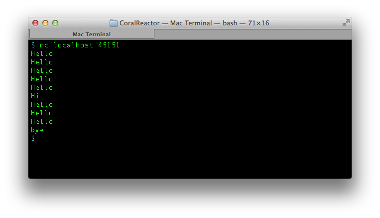 To connect to the server we can use the PrintLineClient we just wrote. For simplicity we just use netcat: